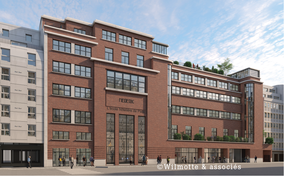 Le projet consiste en la réhabilitation du bâtiment de l’École Hôtelière de Paris (20 rue Médéric à Paris 17ème). Le CFA Médéric, est un centre de formation d’apprentis en alternance qui dispense des formations dans le cadre de l’alternance dans les métiers de l’hôtellerie et de la restauration. L’objectif est de créer sur le site, un campus qui réponde aux standards internationaux actuels tout en gardant son écrin de style art-déco.